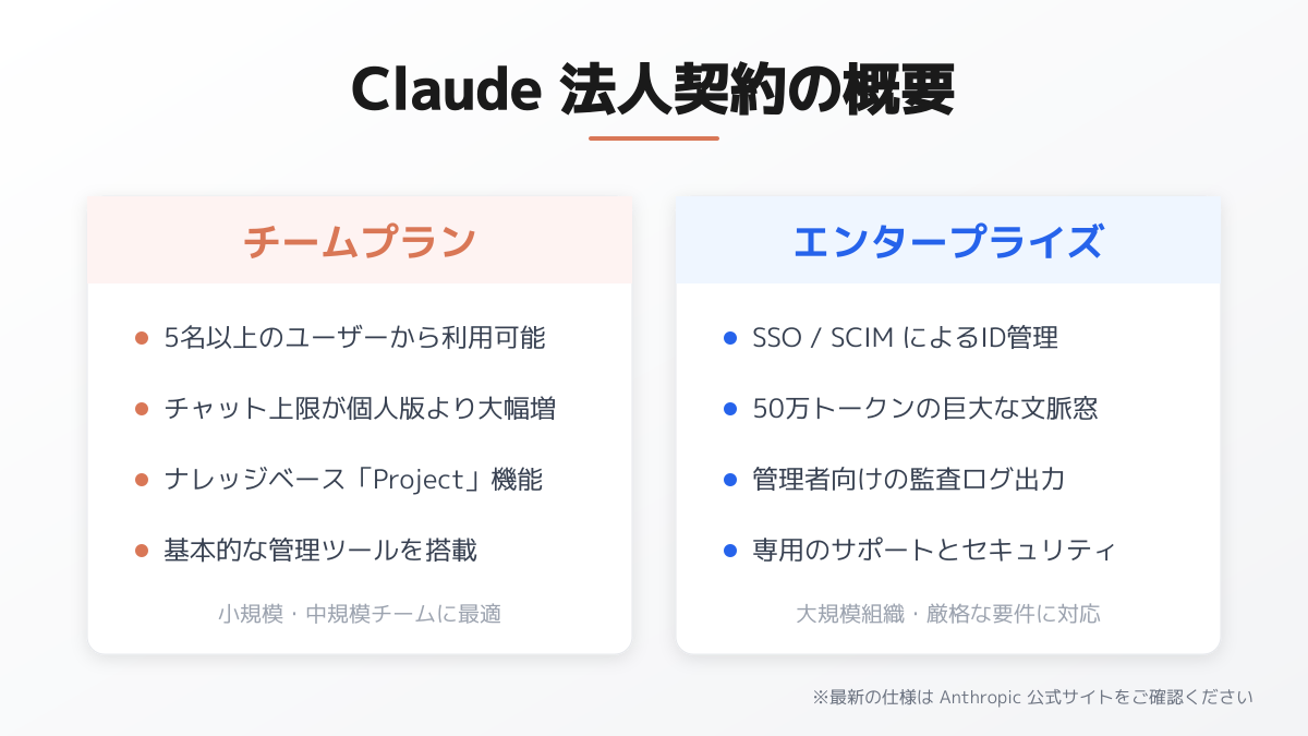 Claude 法人プラン(Enterprise・Team)の徹底比較と選定基準