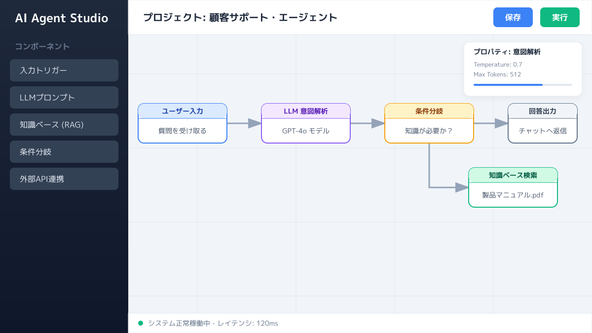 まずは、エージェントに何をさせたいのかを明確にします。「社内規程に関する問い合わせ対応の自動化」「営業の商談履歴からの見積書作成」など、具体的なユースケースを定義します。初期段階では、複雑すぎる業務よりも、手順が明確な定型業務を選ぶのがポイントです。
