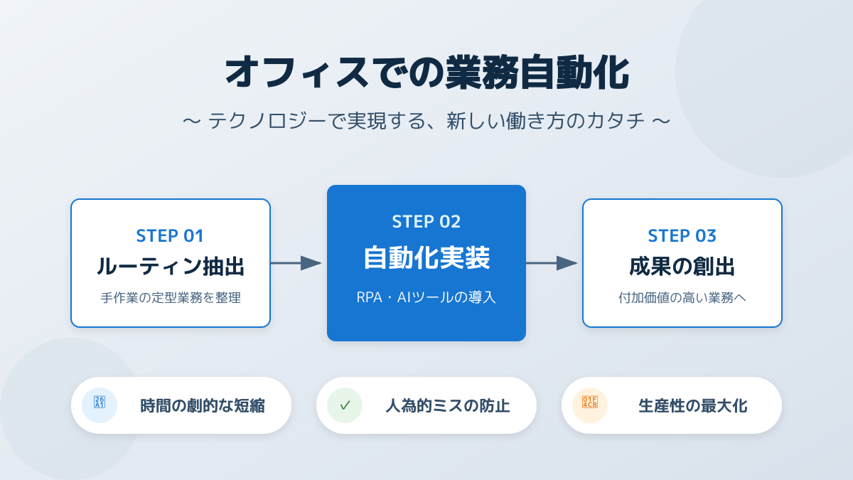 RPAとAIエージェントの違いや、より具体的な導入ステップについては、【2026年版】AIエージェントの業務自動化例3選!RPAとの違いと導入手順 や、【2026年版】AI導入失敗の7大原因とは?コンサル不要で確実な導入効果を出す手順 も合わせてご覧ください。自社の課題に最適なツール選定と導入のヒントが得られます。