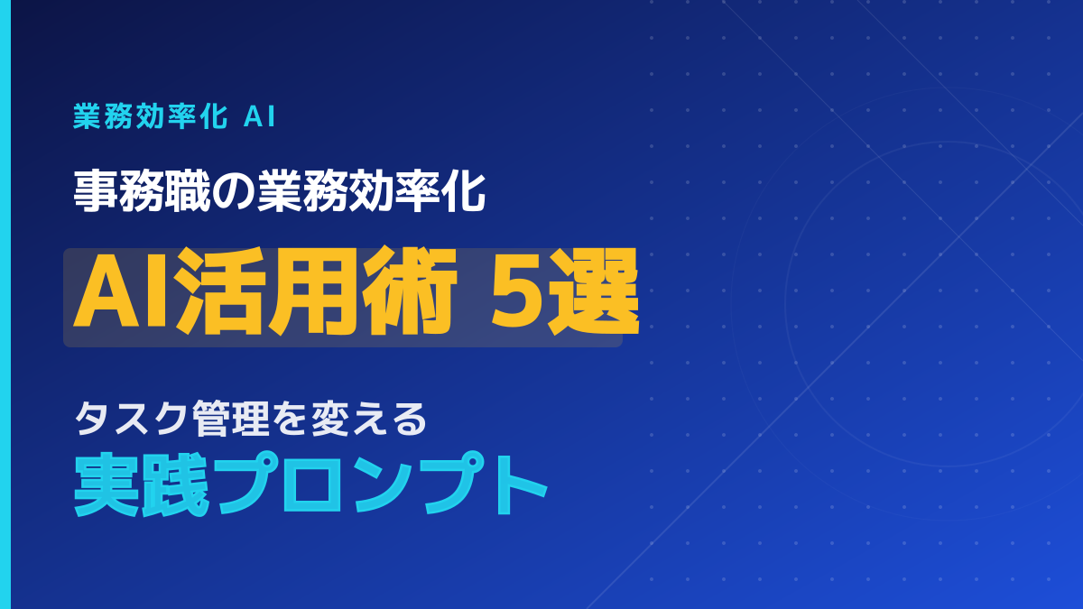 毎日のルーティン業務に追われていませんか?本記事では、事務職の方がAIを活用して劇的な業務効率化を実現するためのタスク管理術を解説します。明日からそのまま使える実践プロンプトや、評価につながる業務効率化の目標例5選も網羅。残業を減らして生産性を高める第一歩を踏み出しましょう。
