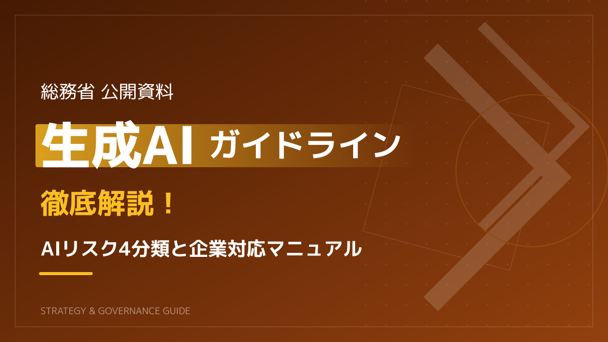 総務省やデジタル庁が発表している生成AIガイドラインの要点をビジネスパーソン向けに徹底解説。総務省が提唱する「AIリスク4分類」に基づく企業側の具体的な対応手順と、現場ですぐに使える社内利用ガイドラインのサンプルを整理しました。